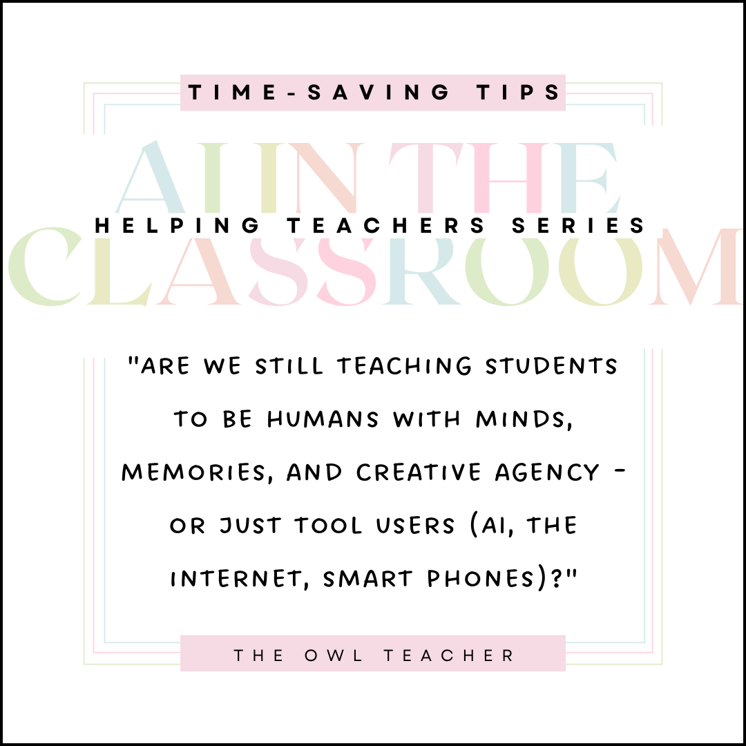 “Are we still teaching students to be humans with minds, memories, and creative agency – or just tool users (AI, the internet, smart phones)?”