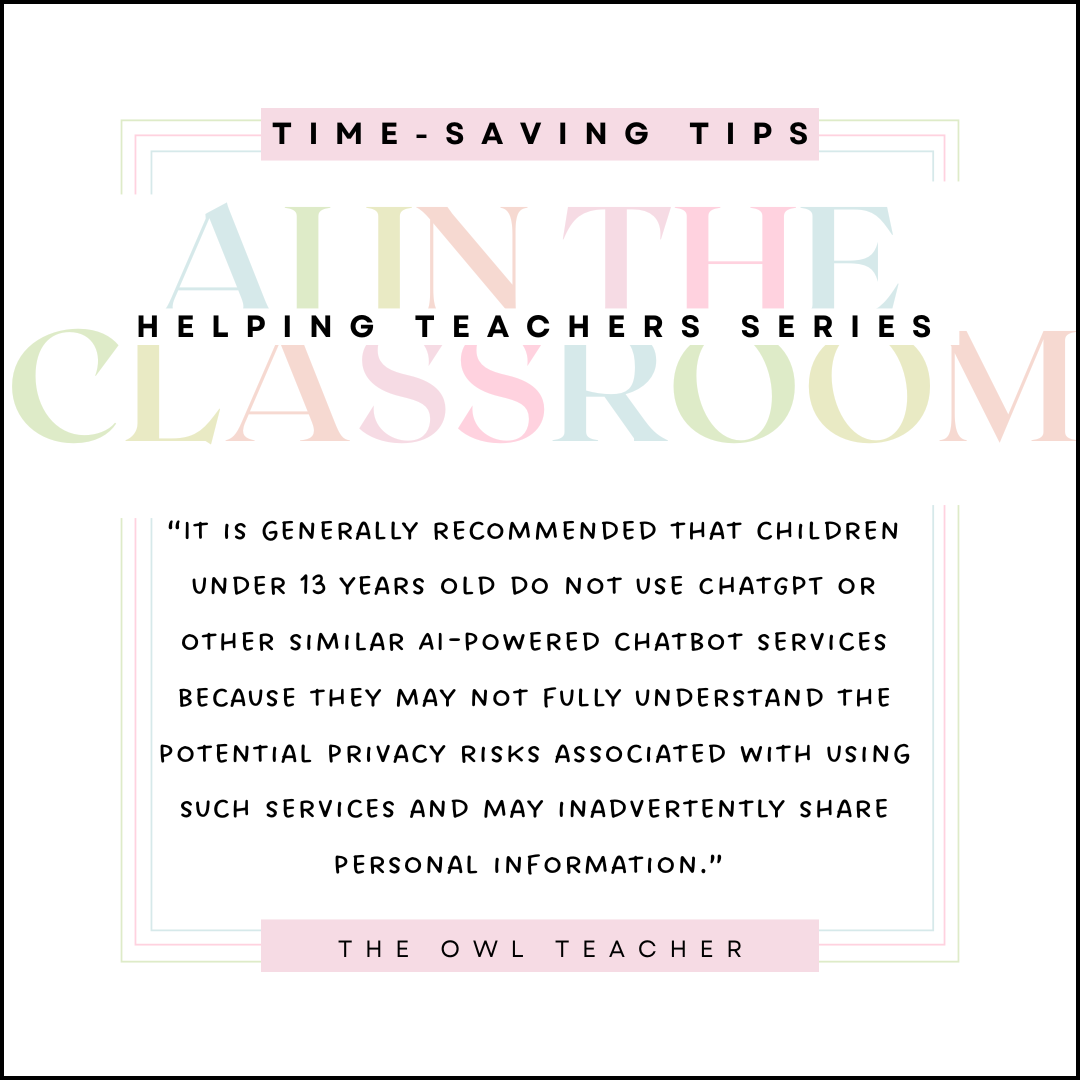 According to Darling-Hammond et al. (2020), the highest-impact teaching still comes from strong student-teacher relationships, feedback, and engagement—none of which AI can replicate on its own. Additionally, it is generally recommended that children under 13 years old do not use ChatGPT or other similar AI-powered chatbot services because they may not fully understand the potential privacy risks associated with using such services and may inadvertently share personal information.