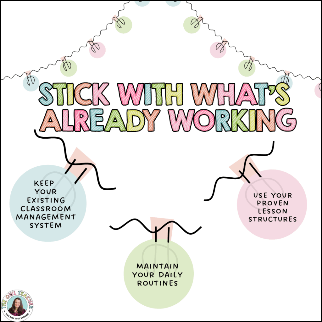 This isn’t the time to debut complex new activities. Stick with lesson structures your students know and can execute independently. Think read-alouds, station rotations, they’ve mastered, familiar review games, and tried-and-true activity formats.