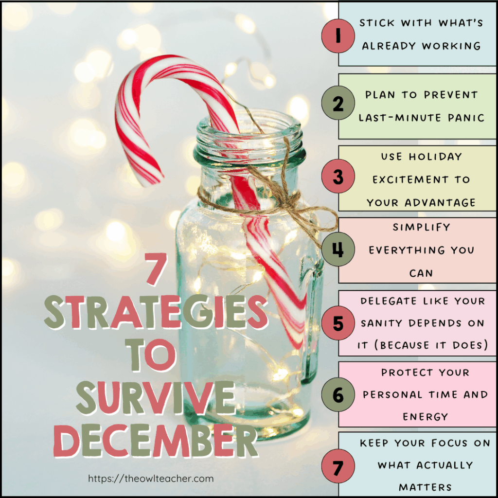 Perfectionism is the enemy of December survival. Your bulletin boards don’t need to be Pinterest-worthy. Your holiday craft doesn’t need 47 steps. Your lesson plan format can be bare bones.
