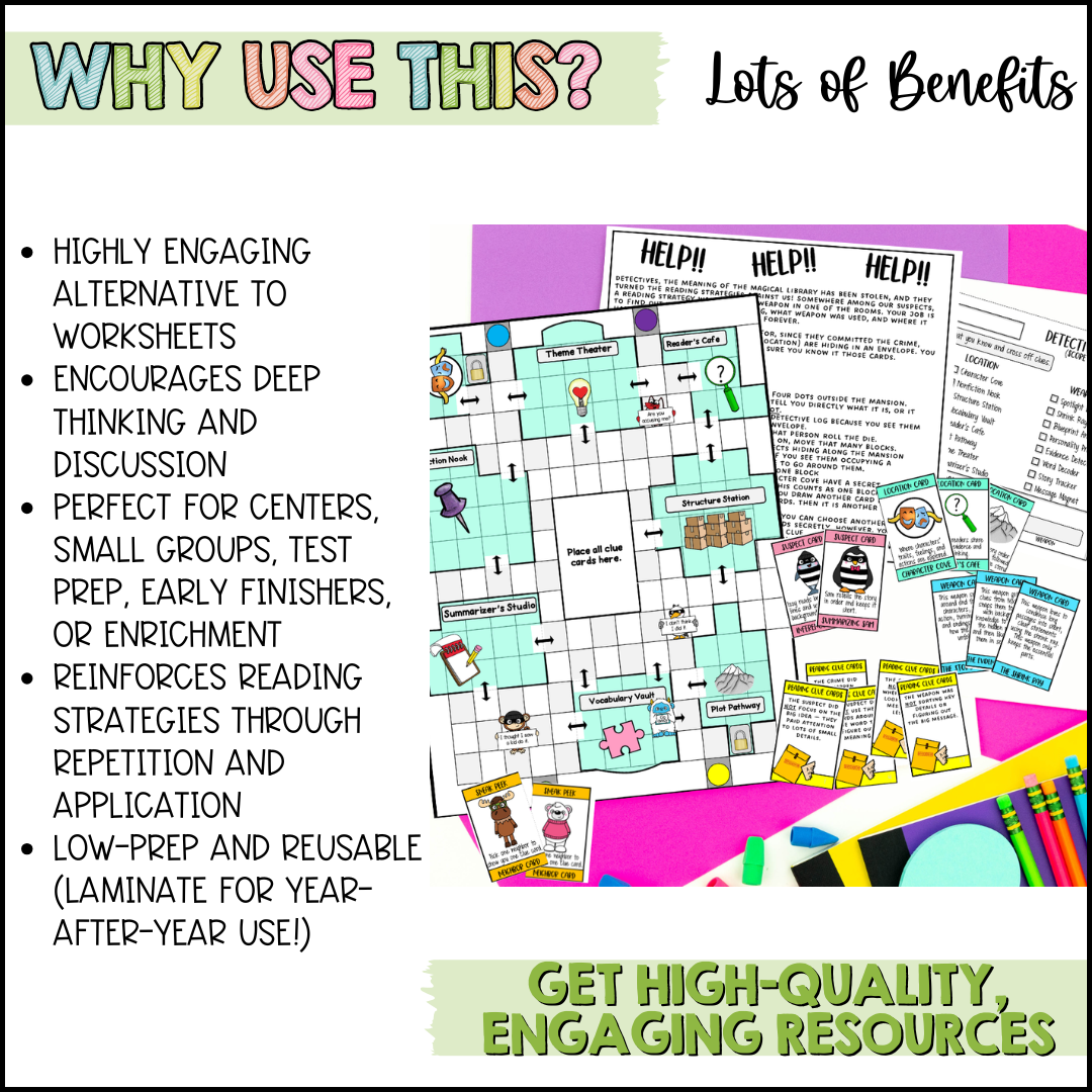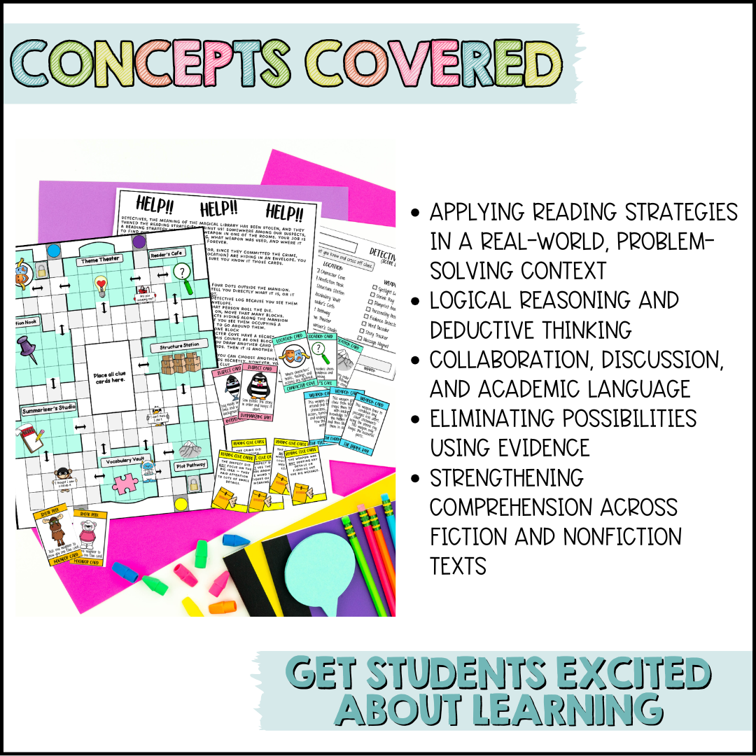 Give your students a memorable way to master reading comprehension strategies while building critical thinking skills. This Reading Clue Mystery turns your classroom into a detective agency—and your students into expert readers.